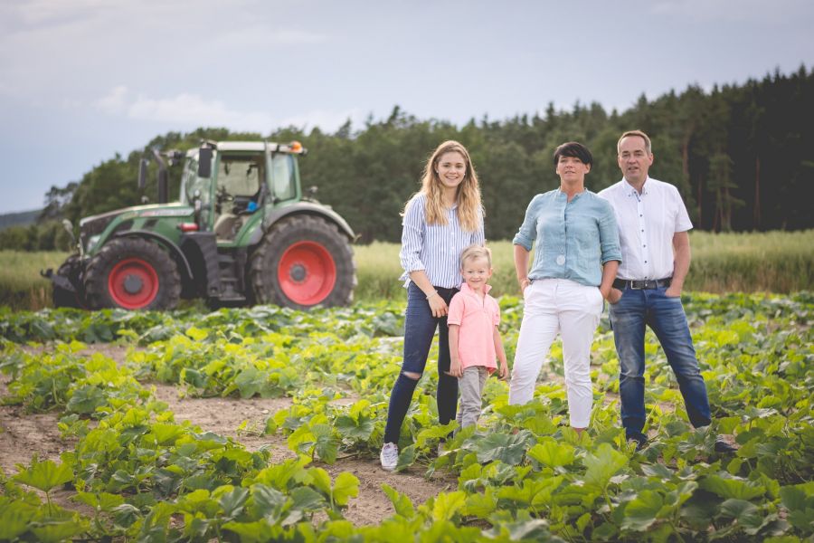 | Sonstiges: | Übernahme: 1992, gemeinsame Betriebsführer seit 2013 - Arbeitskräfteäquivalent: Betriebsführerin und Betriebsführer, 1/2 Fremdarbeitskraft - Zuständigkeit: Ackerbau: Adolf Direktvermarktung: Martina - Lage der Flächen: Streulage - Konventionell - überbetrieblicher Maschineneinsatz von Kartoffel- und Kürbiserntemaschine (Anteil jeweils 1/2) |