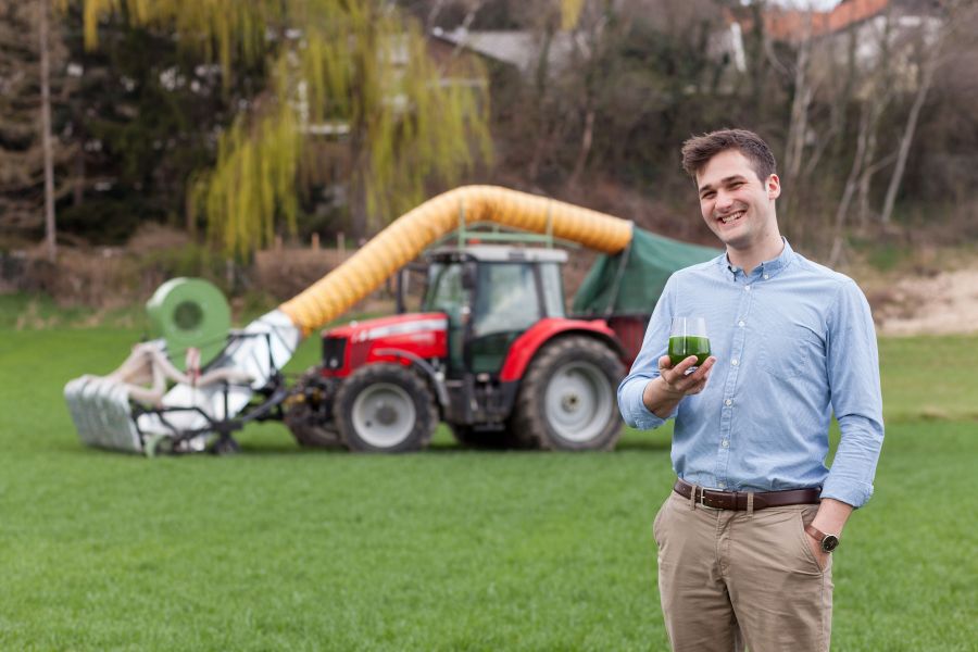 In 40 Fuß Containern wurde eine Quelleinrichtung installiert und eine Verarbeitungsstätte für das produzierte Weizengras zur Saftgewinnung errichtet. Weiters wurde aufgrund der hohen Nachfrage eine Erntemaschine für die Feldernte von Weizengras konstruiert. Parallel zur Erzeugung der Keimlinge werden auch das erzeugte Weizen- und Gerstengras genutzt. Die Innovation: Durch die Quelleinrichtung können, unabhängig von Umwelteinflüssen, große Mengen an qualitativ hochwertigem Grünfutter an 365 Tagen im Jahr erzeugt werden, Trockenperioden können überbrückt werden. Die selbstkonstruierte Erntemaschine ermöglicht eine Ernte ohne Bruchstellen mittels Lufttechnik. Da die patentierte Keimanlage auch Bio zertifiziert ist, wird das Gras frisch geerntet, sofort zerkleinert und gepresst. Der gewonnene Saft wird anschließend schockgefrostet. Der so produzierte biologische Weizen- und Gerstengrassaft wird mittels Online Shop (www.agrosprouts.at) verkauft. Durch die Logistikkette ist es möglich, die Onlinebestellungen innerhalb von 48h tiefgekühlt zu Kunden in ganz Österreich und Deutschland zu versenden. Durch die große Nachfrage 2017 wurde auch eine eigene Erntemaschine entwickelt, die es ermöglicht, das feine Weizen- und Gerstengras ohne Bodenkontakt und besonders schonend im Luftbett zur ernten. Dadurch kommt es zu keinen Bruchstellen an der Pflanze, welche eine sofortige Oxidation bewirken würden. Durch die Kombination der besonderen Anbautechnik und dieser Erntemethode ist es möglich, den Kunden eine hohe Saftqualität anzubieten.
