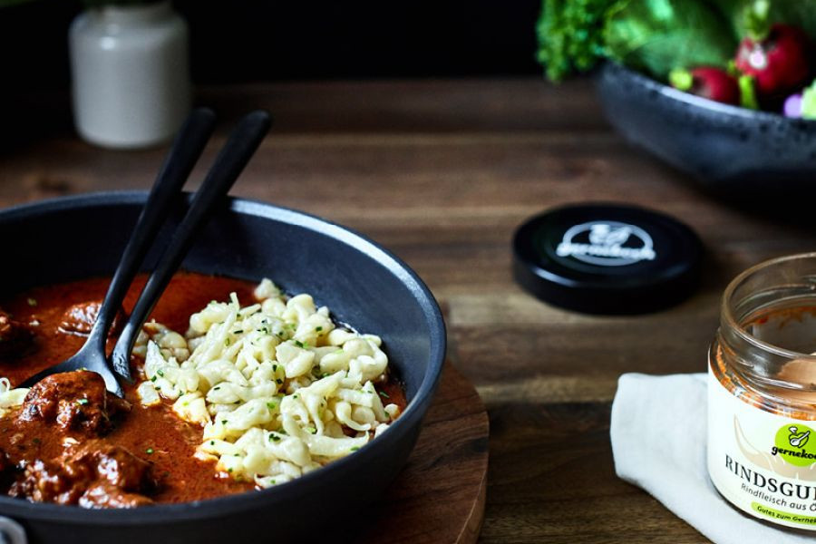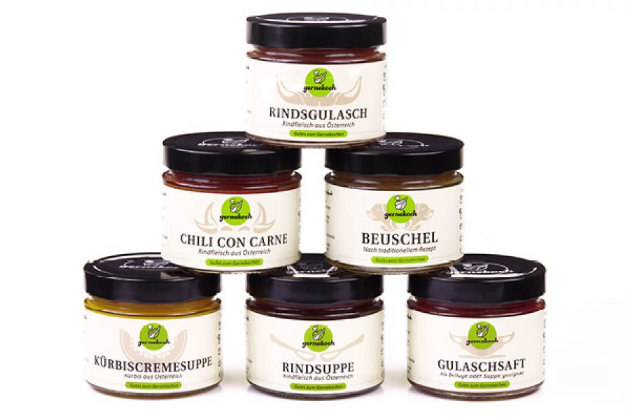 Aus einem geplanten halben Jahr wurden beinahe zwei Jahre. Es wurde sehr viel gekocht und probiert, um den richtigen Zeitpunkt der Abfüllung zu finden. Da keine Konservierungsstoffe verwendet werden, musste man sich langsam an die Rezepturen herantasten. Rückschläge hat es zum Glück keine großen gegeben. Nichts wurde überstürzt, die beiden sind behutsam an die Sache herangegangen. Sie mussten jedoch lernen, sich in Geduld zu üben. Wer gut kocht, kocht gerne, Wer gerne kocht, kocht gut. gernekoch ist Gutes zum Gernekochen. Persönlich ausgewählte und sorgfältig zubereitete Produkte aus der heimischen Landwirtschaft - das ist gernekoch. Inspiration für individuelle Speisen, Animation, wieder einmal selbst zu kochen. Gerne zu kochen. Rasch lassen sich damit persönliche Menüs nach eigenem Geschmack verfeinern und anrichten sowie Kochkünste ausleben. Gernekoch übernimmt das 'Lästigere' am Kochen. Die Auswahl der Zutaten, das Einkaufen, das Zuschneiden, das Portionieren, das ewige Umrühren. Der Rest bleibt dem Koch überlassen. Das spart Zeit. Mit gernekoch kann man sicher sein, was man zu sich nimmt und woher die Zutaten kommen. Dahinter steckt der besondere Bezug zu Lebensmitteln und zu dem, was die Natur hergibt, die Wichtigkeit der Herkunft aller Zutaten, der Zugang zum Thema 'kochen', die Art und Weise, wie die Speisen zubereitet werden, die Freude am Kochen und die Lust am Experimentieren sowie die gegenseitige Inspiration. In Zahlen bedeutet das: 0% Konservierungsstoffe 0% Geschmacksverstärker Keine Zusatzstoffe Das Produkt wird im Glas serviert, d. h. es entsteht kein Müll 100% der Grundzutaten ausschließlich von heimischen Partnerbetrieben gernekoch ist für Menschen, die gerne kochen von Menschen, die gerne kochen.