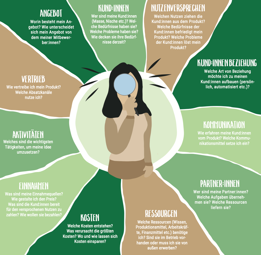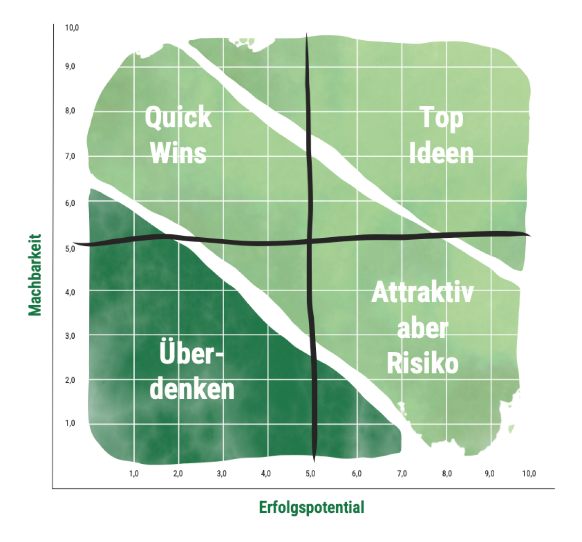Hand in Hand mit der Ideenbewertung geht die Beschreibung Ihrer Ideen. Beschreiben Sie Ihre Ideen zunächst grob, um erste Erkenntnisse darüber zu erhalten, ob Sie mit diesen dauerhaft Erfolg erzielen können und ob deren Umsetzung für Sie machbar ist. Folgende Grundfragen helfen Ihnen dabei:
