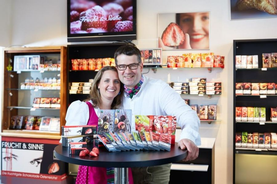 Alles begann, als Christina und Thomas Kibler im Jahr 2002 den Hof der Familie Kibler übernehmen sollten. Sie waren immer schon entschlossen, die Familientradition fortzuführen, doch in der Landwirtschaft allein sahen die beiden wenig Perspektive. Die Landwirtschaft kombiniert mit einem aufstrebenden Produkt, das war immer schon ein Traum des wirtschaftlich denkenden Thomas. Gemeinsam beschlossen sie, ein Produkt zu entwickeln, in dem sowohl ihre Leidenschaft für heimische Früchte als auch ihre Liebe zu visionären Ideen und technologischen Innovationen zum Ausdruck kommt und stießen auf gefriergetrocknete Früchte. Der erste Markttest mit tausend gefriergetrockneten Erdbeeren – einzeln und hochwertig verpackt – ging total daneben. Knapp drei Jahre wurde weiterexperimentiert und – als letzter Versuch – die Frucht hauchdünn mit Schokolade überzogen. Optisch ein Highlight, geschmacklich unschlagbar! Auf einmal wurde Geschichte geschrieben. Die Pioniere im Bereich der Gefriertrocknung in Österreich hatten durchgehalten. So wurde aus dem Kibler-Hof die FRUCHT & SINNE Schokoladenmanufaktur.