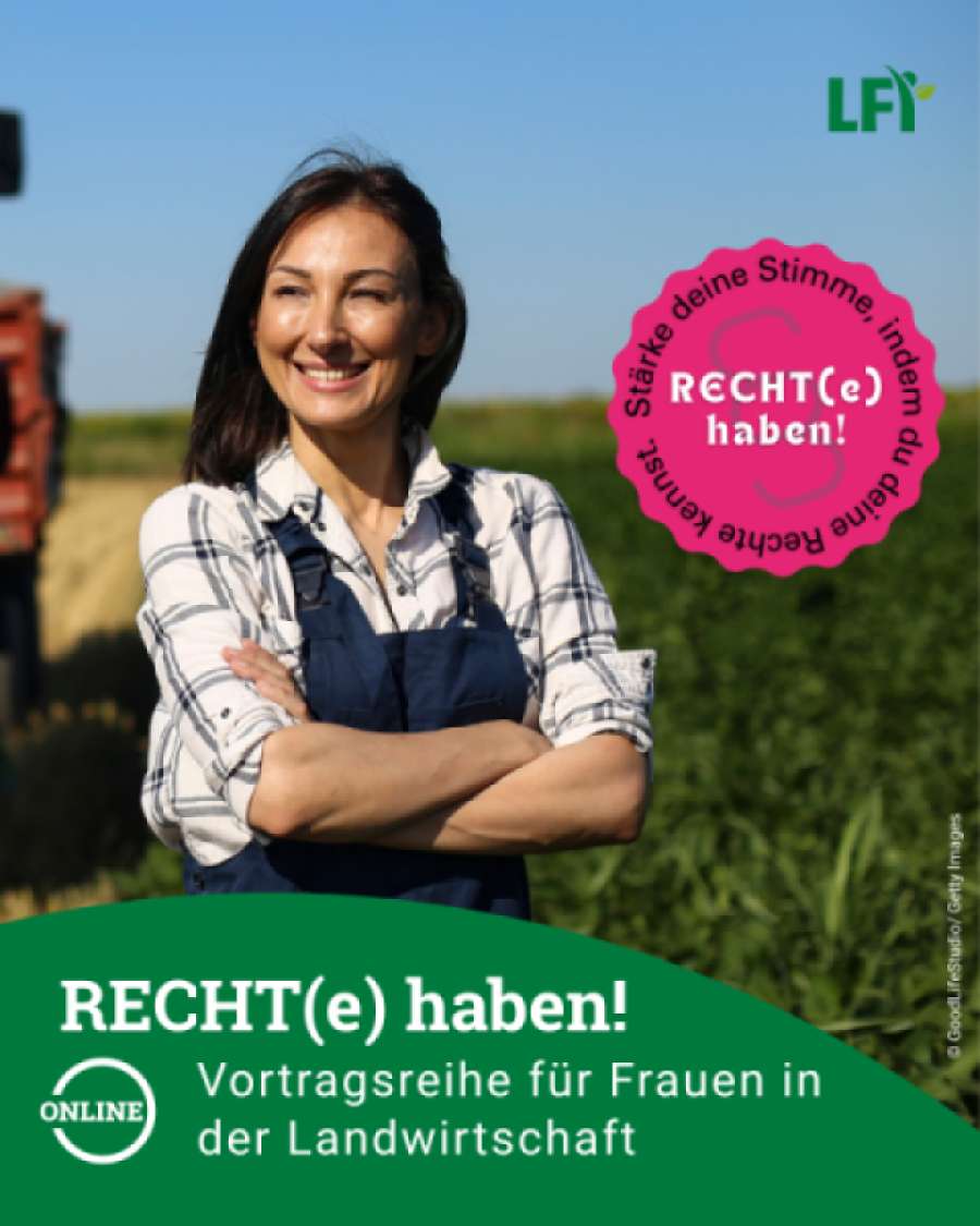Die Online-Reihe vermittelt praxisnahes Wissen zu wichtigen rechtlichen und sozialen Fragen im bäuerlichen Alltag – speziell zugeschnitten auf Frauen, die in Hof, Familie und Betrieb Verantwortung tragen. Die Inhalte reichen von den rechtlichen Spielregeln am Hof über Familien- und Erbrecht, Hofübergabe und Sozialversicherung bis zu Mutterschaftsleistungen und Steuertipps.